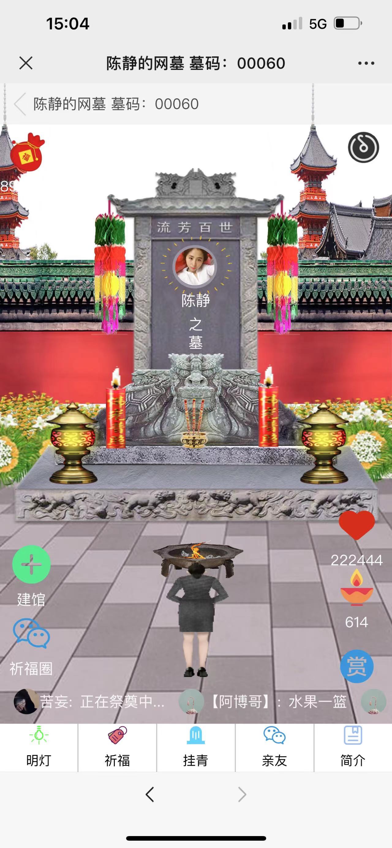 一年一清明,一岁一追思,愿逝者安息,生者如斯,平台提供在线挂青、挂灯、放灯、除草、献花、鞠躬、烧纸、上香、点蜡、供品。
