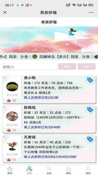 操作简单的一键建馆,不用打字轻松祭拜,可以通语音拍照悼念,多人信息共享,追思、缅怀同步到达,功能简洁明了。